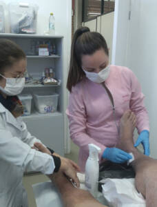 A estomaterapia aplicada contribui para a melhora mais ágil e eficaz da lesão do paciente. O atendimento, conforme solicitação médica, é realizado no ESF por técnicas de enfermagem treinadas por Daniela e a domicilio pela própria enfermeira, dependendo da situação e diagnostico. “Já atendemos úlceras venosas, lesões por pressão que o curativo simples não teria eficiência igual para a melhora do paciente, dentre outros casos. Além da eficácia, o benefício do curativo utilizado pela estomaterapia é que o paciente pode ficar até sete dias com ele, contribuindo com o tempo do profissional, melhora clínica e tempo para atendimento a outras pessoas”, explicou a enfermeira Daniela Arcaro.