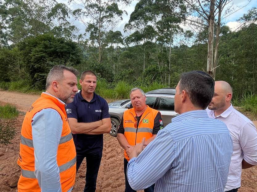 Acompanhado do prefeito de Jacinto Machado, João Batista Mezzari (Gaiola) e do coordenador regional da secretaria de Infraestrutura, Ademir Honorato, o secretário estadual Jerry Comper percorreu o trecho em obras da SC-108 para uma vistoria.