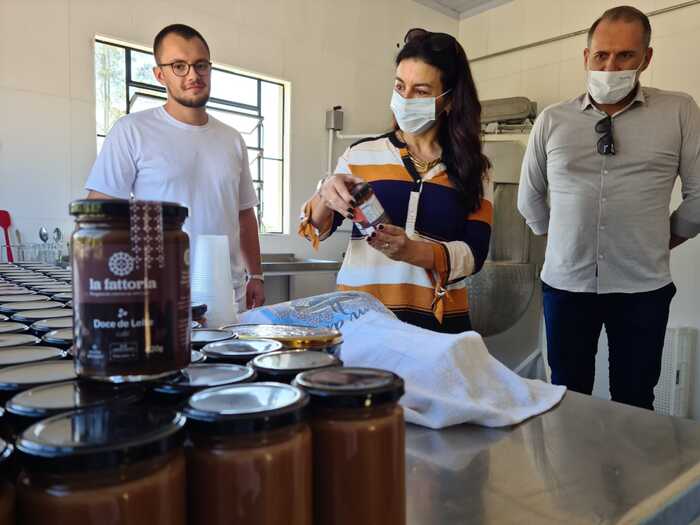 “Eu sou bem suspeita pra falar desse produto, porque sou uma ‘formiga’, amo doces. Mas eles produzem aqui um doce de leite de muita qualidade. O de café mesmo, é indescritível. Tenho sempre em casa e já presenteei amigos que voltaram para buscar mais, de tão deliciosos que são”, disse Gislaine, enquanto passava um pouco do Doce de leite La Fattoria em um queijo colonial.