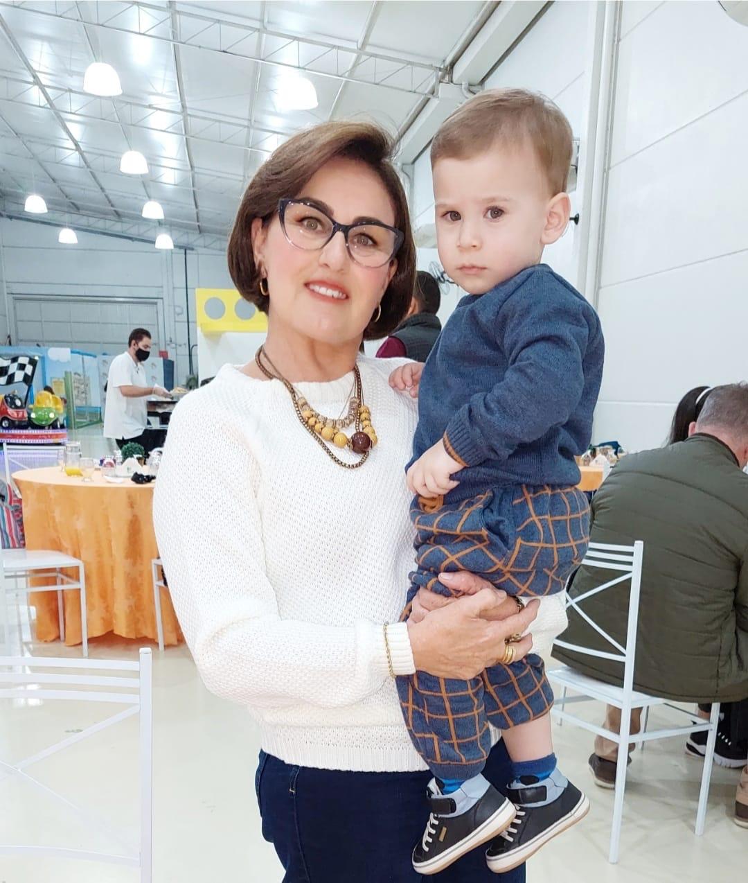 Cláudia Zanette curtindo o neto Bernardo, no Espaço Allegra.
