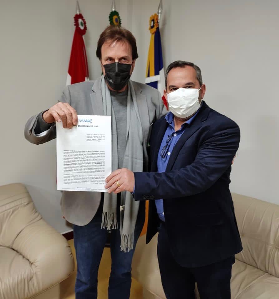 César Cesa, prefeito de Araranguá e Jairinho Costa diretor do SAMAE. Projetos excelentes.