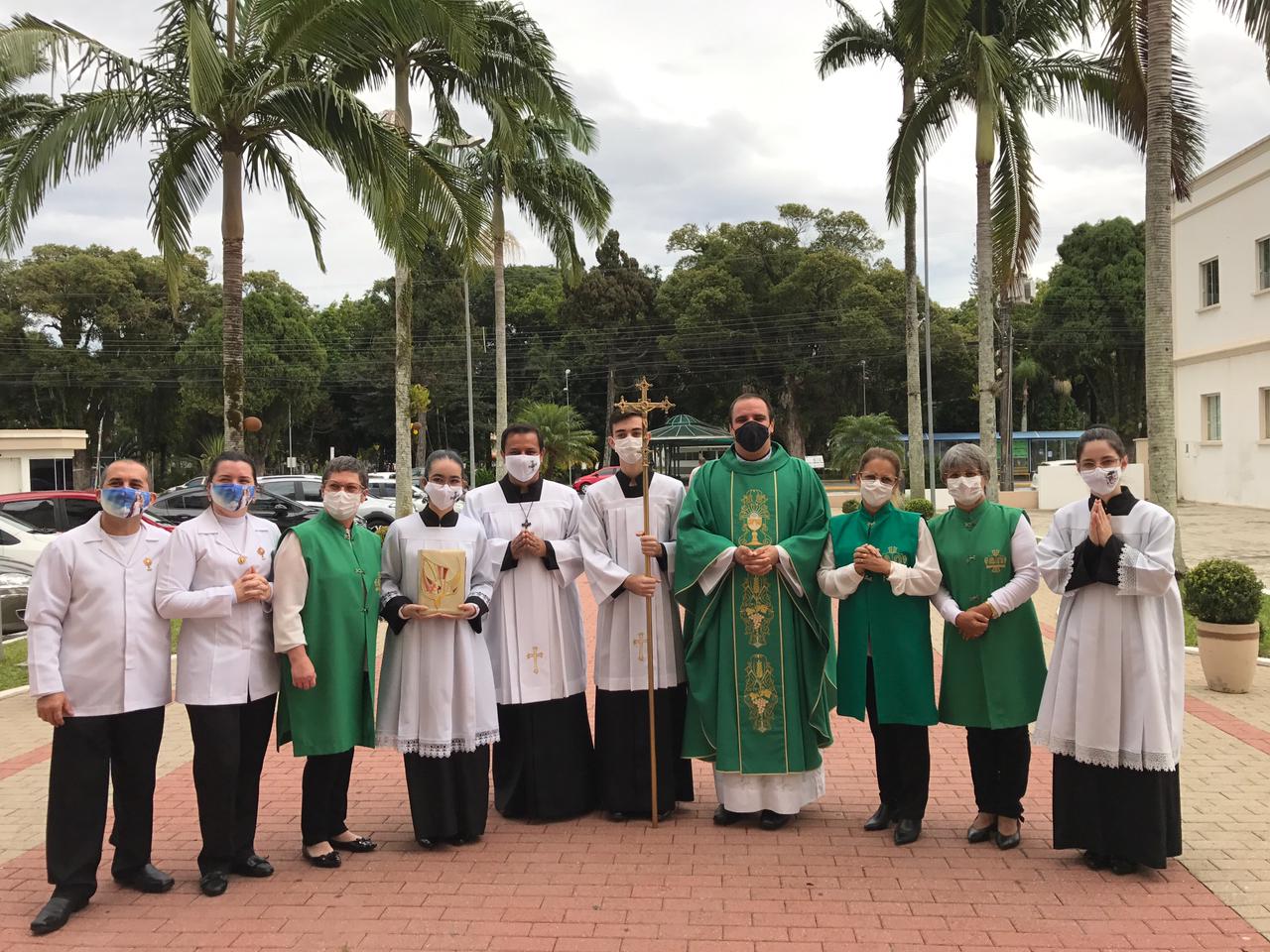 As bênçãos do Vigário Marcos Legnani e equipe de liturgia no Santuário da Nossa Senhora Mãe dos Homens.