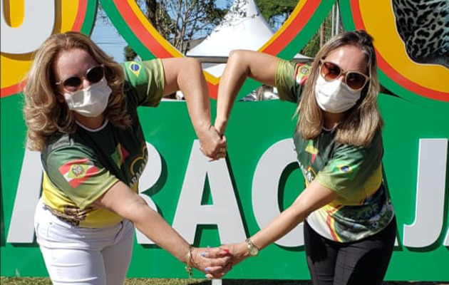 Claudete Brambila, primeira dama de Maracajá e a vice, Gislaine Rocha nas comemorações dos 54 anos de emancipação política administrativa.