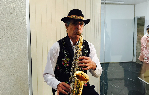 Carlos Magno o famoso saxofonista na inauguração da nova sede da Rede Feminina.