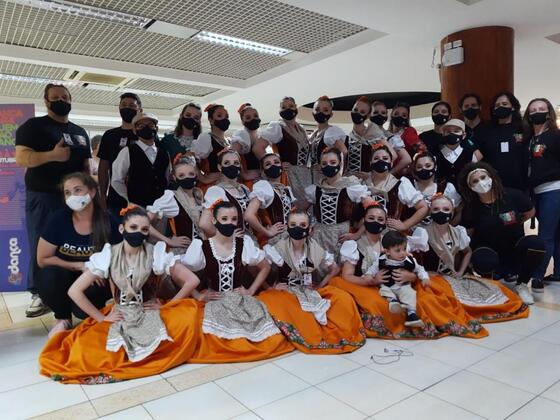 grupo, no Festival de Dança de Joinville. Samanta é sombriense e competiu com o
