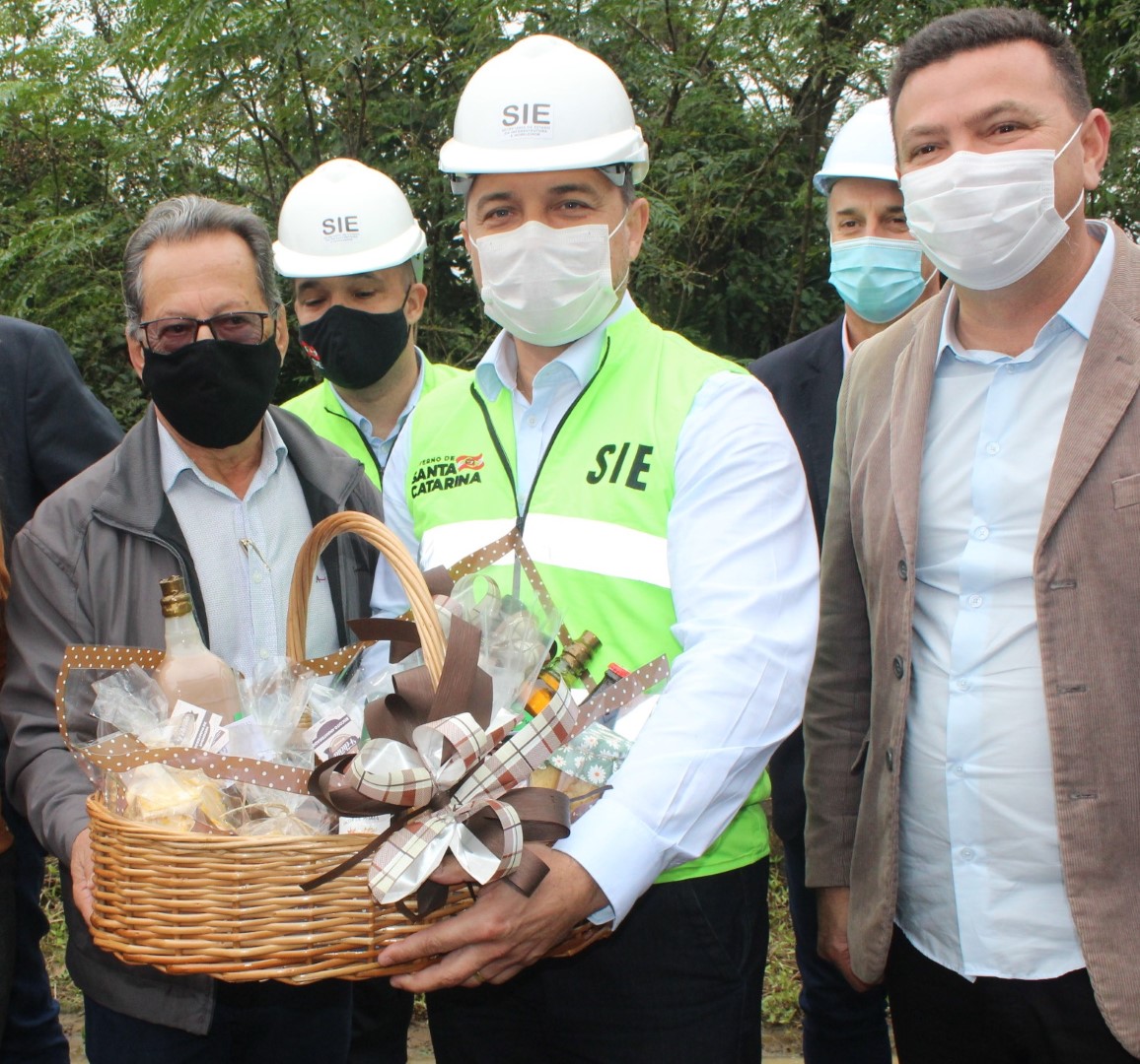O prefeito Anibal Brambila e o vice-prefeito Volnei Rocha aproveitaram a vida do governador de Santa Catarina, Carlos Moisés, ao município para presenteá-lo com uma cesta recheada de produtos coloniais produzidos em Maracajá.
