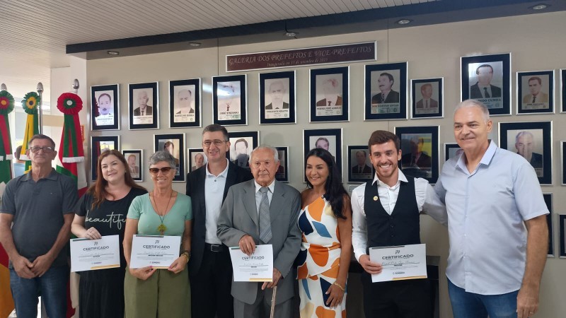 Após os parabéns, ex-prefeitos e seus familiares se posicionaram diante da Galeria dos Prefeitos para a homenagem a todos que participaram da construção da história de Sombrio ao longo das décadas. Luana Borba recebeu a homenagem pelo primeiro prefeito eleito do município, seu avô, Santelmo Borba. José Antônio Tiscoski, o Jusa, representou seu avô José Tiscoski. Edson Minatto recebeu a honraria pelo ex-prefeito Fioravante Minatto. Jari Amorim representou o tio avô Pedro José Amorim, enquanto o próprio ex-prefeito Neri Demétrio Coelho, eleito em 1970, esteve presente para receber sua homenagem.
