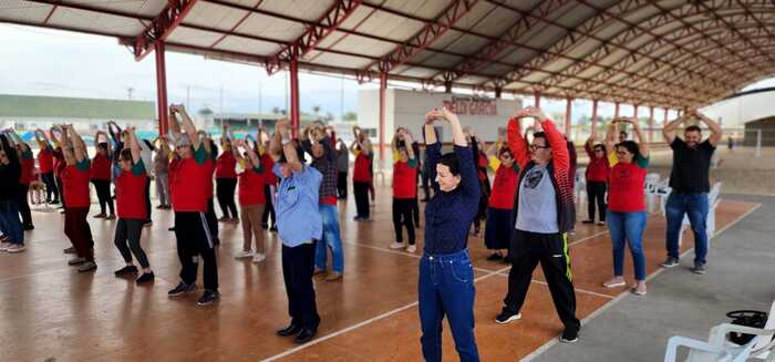 Ginástica especial, gincanas e um delicioso café fizeram parte do dia de celebração dos Idosos de Sombrio, na tarde desta terça-feira, dia 27, no centro Multiuso Deldi Garcia, no bairro Parque das Avenidas. Encontro foi organizado pelo Serviço de Convivência e Fortalecimento de Vínculo da Terceira Idade.