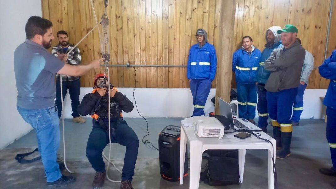 Durante o curso, os colaboradores receberam instruções práticas sobre uso correto de cinturões de segurança e talabartes; técnicas de nós e ancoragens em cordas e escadas; montagem de sistemas de proteção coletiva; procedimentos de resgate e primeiros socorros; atuação do vigia em espaços confinados; checklist de EPIs e monitoramento de gases.
