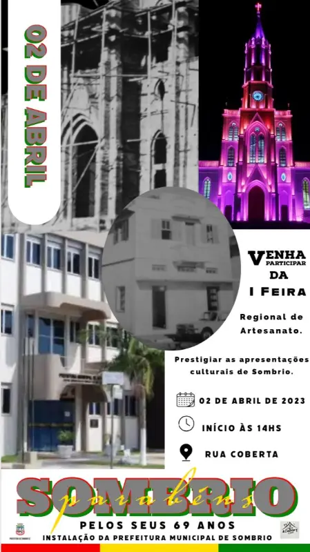 Um dia com música, artesanato e grandes comemorações está sendo preparado para celebrar os 69 anos da instalação da Prefeitura de Sombrio. A Primeira Feira de Artesanato será realizada em 2 de abril, data em que o tenente Aminthas Melo tomou posse como prefeito provisório do município.