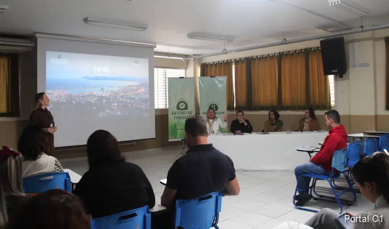 Na reunião, estiveram presentes secretários, diretores e gerentes municipais de turismo da região do Caminho dos Canyons, representantes da Associação dos Municípios do Extremo Sul de Santa Catarina – Amesc, do Senac, Unesc, estudantes e professores do curso de tecnologia em gestão de turismo do IFC, empresários do setor de hospedagem, gastronomia, agentes de turismo e operadoras de turismo da região.