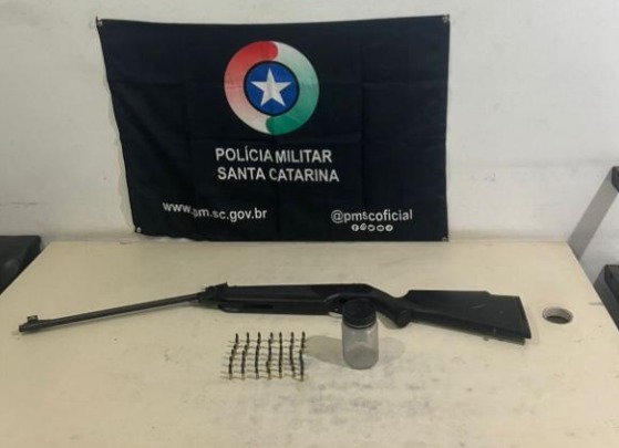 Segundo a PM, o condutor tentou se evadir, mas foi interceptado. Na busca veicular, os policiais encontraram uma espingarda modificada para arma de fogo, além de 50 munições calibre .22 e duas munições calibre .380.