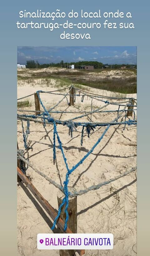 Uma tartaruga de couro( Dermochelys coriacea) desovou em nossa região, o local está sendo monitorado pela equipe da Educamar ( pesquisa e monitoramento Costeiro de animais marinhos) equipe do Ceclimar RS e Polícia Ambiental. Afim de proteger os ninhos até o nascimento que ocorrerá em média de 35 a 60 dias.
