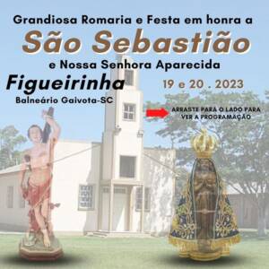 Inicia nesta quinta-feira, 19, com transladação de imagens, a quase centenária Festa de São Sebastião, padroeiro da comunidade de Figueirinha, Balneário Gaivota. Pela primeira vez, em toda a história da tradicional romaria e festa será percorrida em trecho asfaltado pela Prefeitura Municipal de Balneário Gaivota. Após a transladação, haverá bazar de galinha assada com rosca de polvilho.