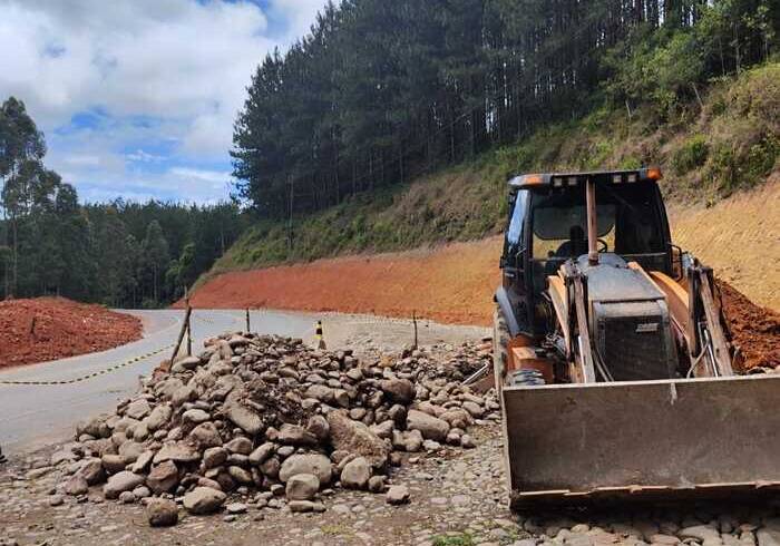 O trabalho faz parte das obras emergenciais para a recuperação de pista e encostas desde o desastre natural, em maio deste ano.