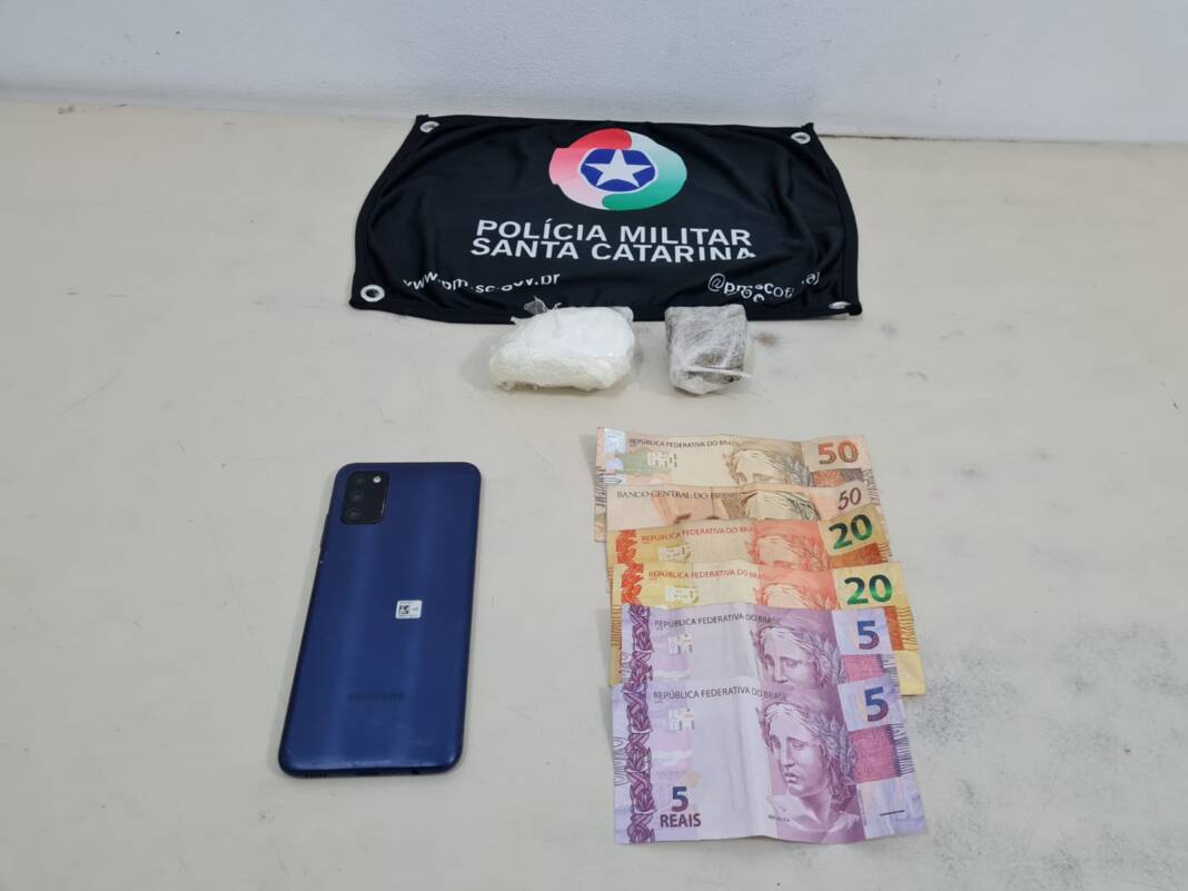 Os policiais apreenderam, no trajeto, com apoio do Canil de Araranguá, 55,5 gramas de pasta base de cocaína e 26 gramas de maconha.