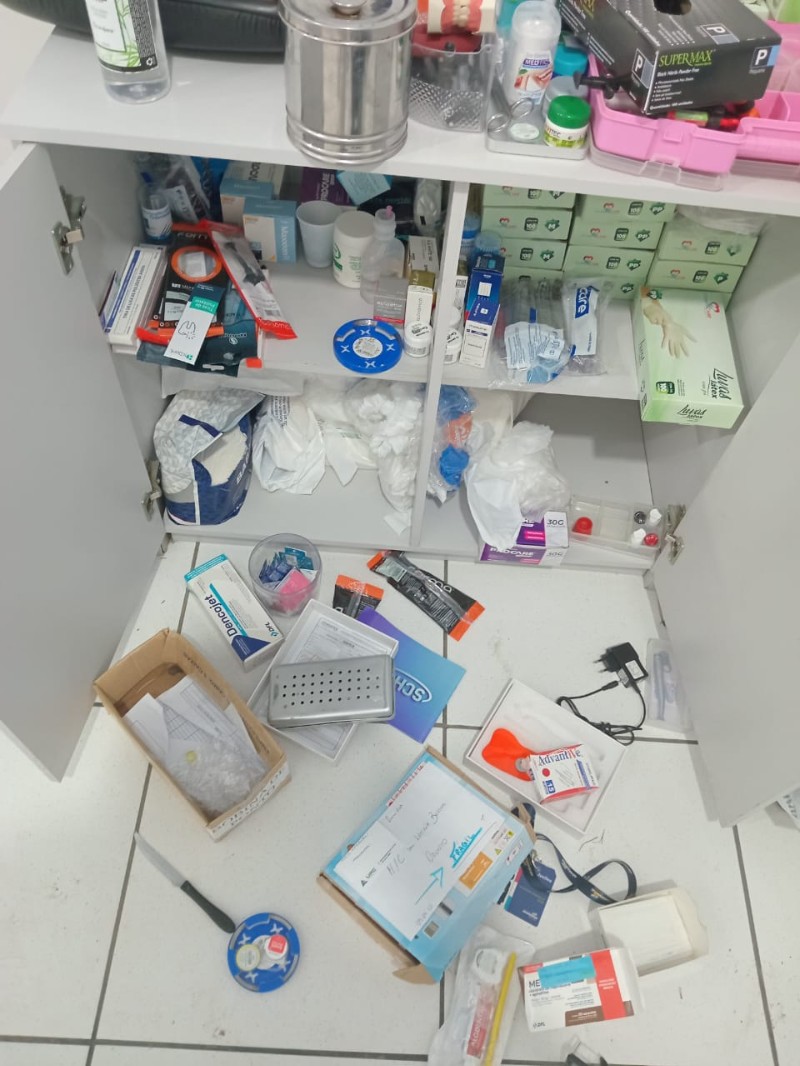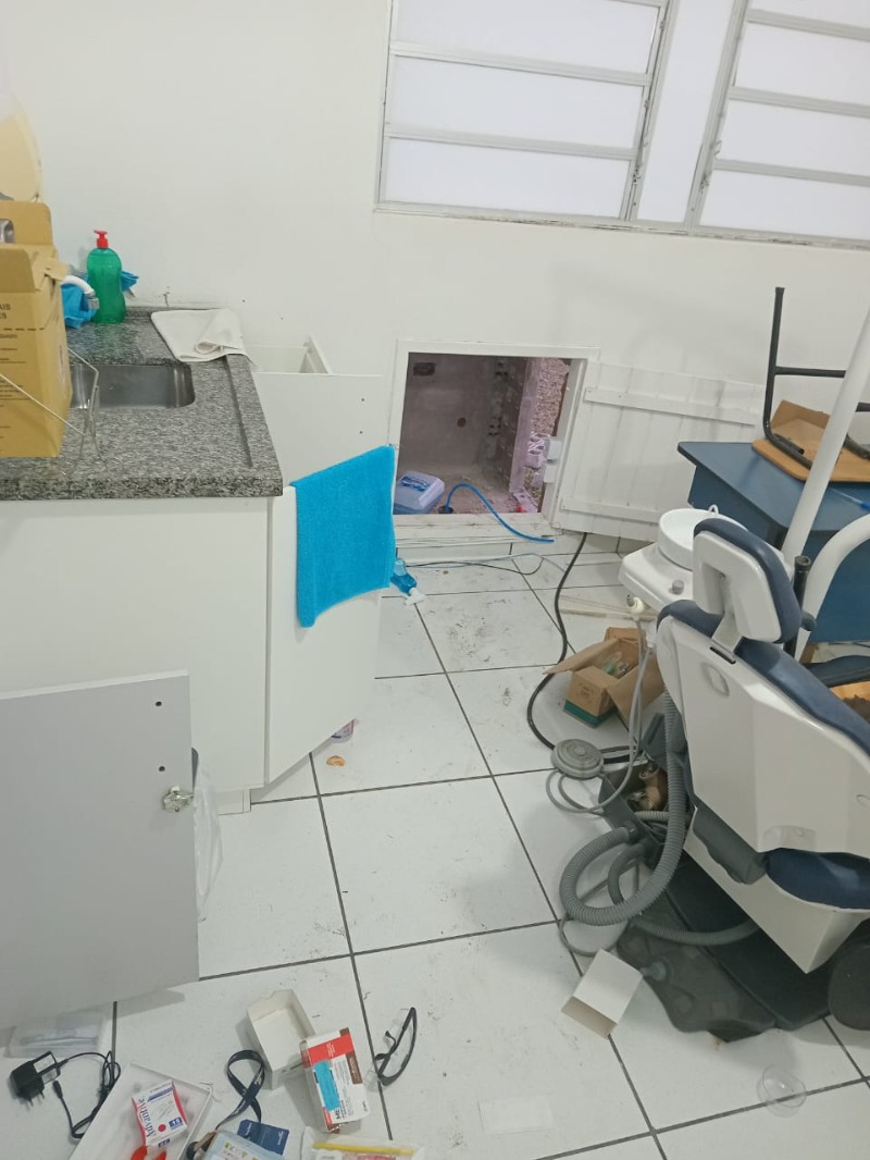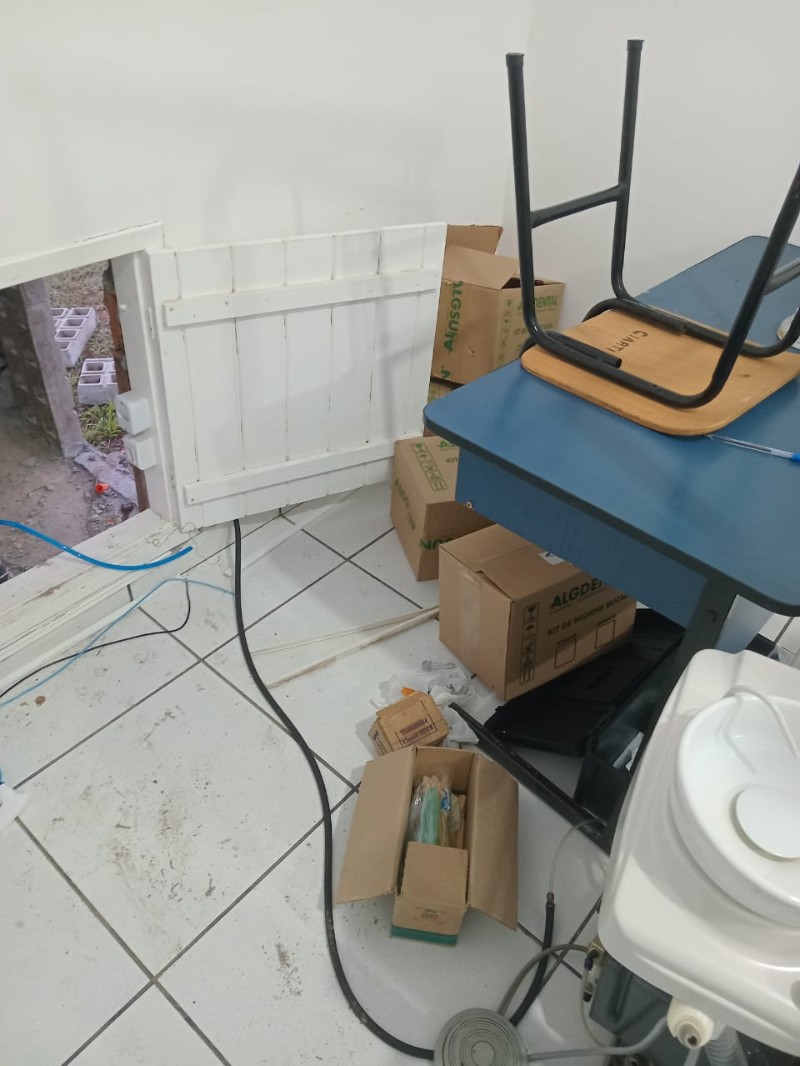 Além disso, foram constatados danos à estrutura física: diversos tijolos das paredes foram quebrados, comprometendo a segurança do prédio. Embora o fornecimento de energia elétrica já tenha sido restabelecido, o serviço de atendimento odontológico permanece suspenso até a conclusão dos reparos.