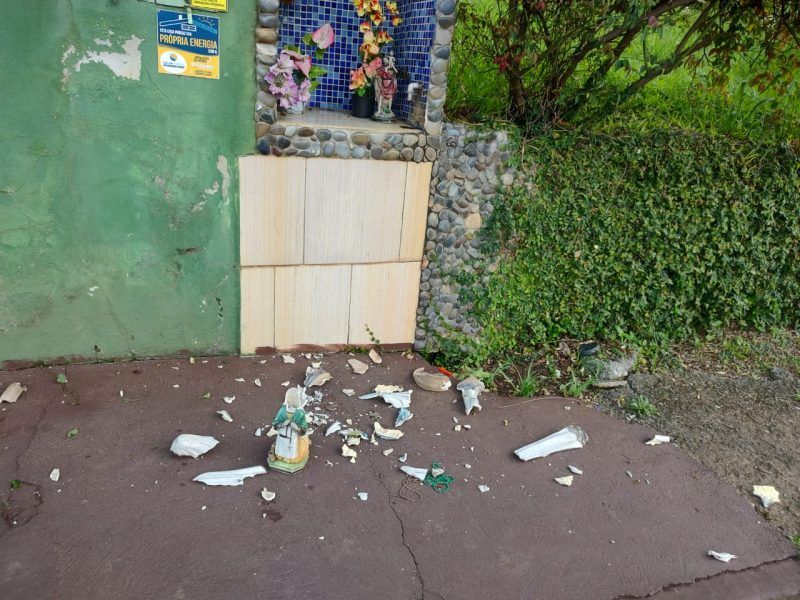 No boletim de ocorrência consta que testemunhas fizeram fotos das imagens quebradas e enviaram para a Polícia Civil. Ao ser localizado pelos policiais, o jovem assumiu o ato e disse que estava muito nervoso pois havia ingerido bebida alcoólica e brigado com a namorada.