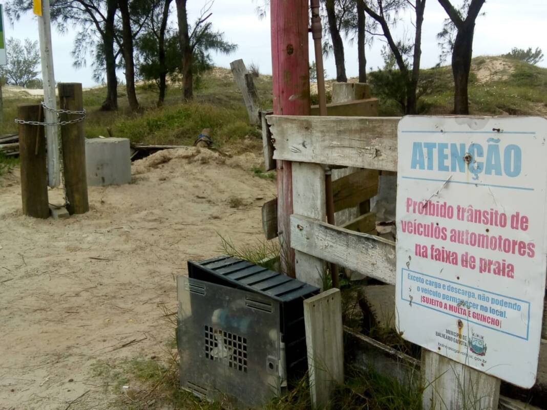 Os servidores da Secretaria de Obras de Balneário Gaivota, que precisaram adentrar à orla para colocação de lixeiras foram surpreendidos com atitude de vândalos que arrebentaram a corrente com cadeado para evitar a entrada indevida de carros e outros veículos não autorizados pelo Ministério Público.