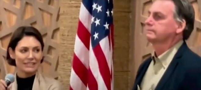Após embarcar para os Estados Unidos, Michelle Bolsonaro reencontrou o ex-presidente Jair Bolsonaro durante um evento com empresários na última terça-feira (14).