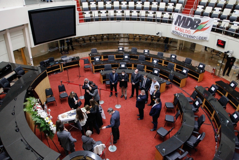 O velório do ex-governador e senador Casildo Maldaner acontece no Plenário da Assembleia Legislativa, nesta terça-feira (18). Em razão disso, todas as atividades parlamentares anteriormente programadas para o dia foram suspensas.