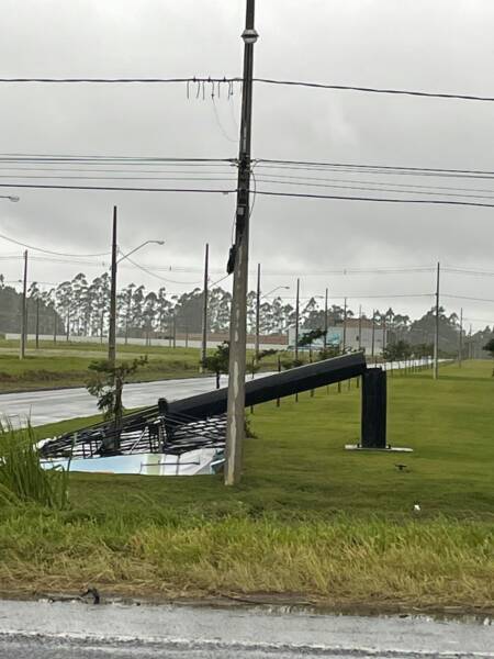 Em Araranguá também teve registro de placas caídas.