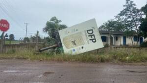 Nossa reportagem registrou algumas fotos no bairro Nova Guarita na BR-101 e também na margens da rodovia em Jacinto Machado como queda de outdoor, placas comerciais, postes e lonas.