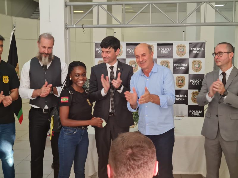 A entrega foi prestigiada por autoridades regionais e da Segurança Pública como delegado geral da Polícia Civil, Ulisses Gabriel e policiais da região, lideranças e os vereadores de Araranguá presidente, Luciano Pires, o vice-presidente da casa, Márcio Tubinho e Diran Drewke, Douglas Michels e Luiz da Farmácia.